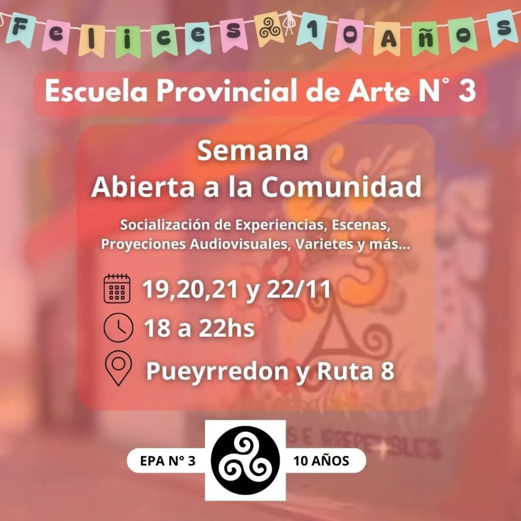 La Escuela Provincial de Arte nro 3, realiza anualmente una fiesta Multiarte, la misma fue declarada por el Concejo Municipal de Venado Tuerto; declaración Nro. 1010/2022 del 23/11/2022, de Interés Cultural Municipal; dado que expone su concepto de aprendizaje. Una experiencia que se transita individual y colectivamente, que asume la cualidad de compartir y abrirse a la ciudad de pertenencia. Como en las Multiartes anteriores, se podrán apreciar intervenciones de danzas, música, esculturas, pinturas, murales, teatro, cortos audiovisuales, documentales, experiencias pedagógicas y ocurrencia con el siempre presente buffet de la Asociación Cooperadora. Este evento ya es parte de los acontecimientos esperados en la ciudad.